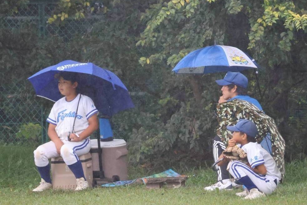 雨で試合中止になったお兄ちゃんも応援に。準決勝も雨中断がありましたが何とか最後まで戦えました。