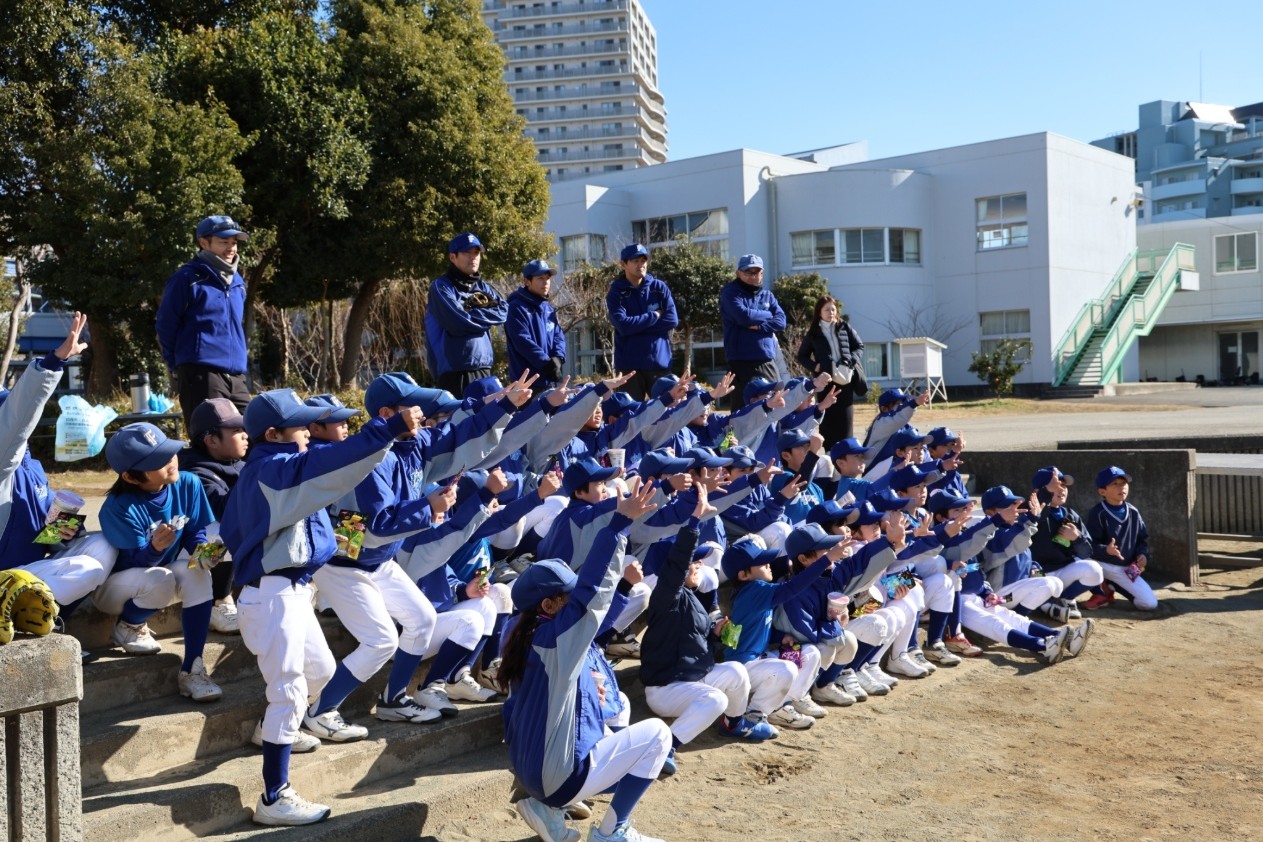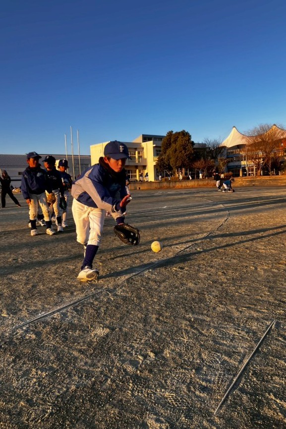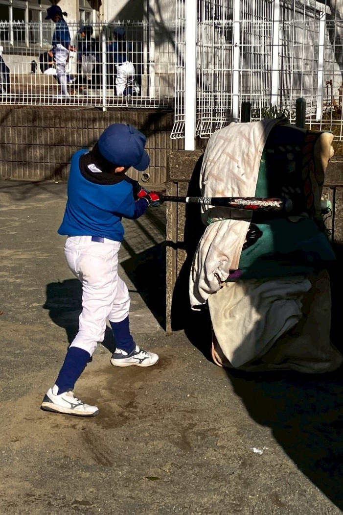 午後から初練習。低学年チームは捕る・投げる・振る・打つの基礎をみっちり行って初日を終えました。